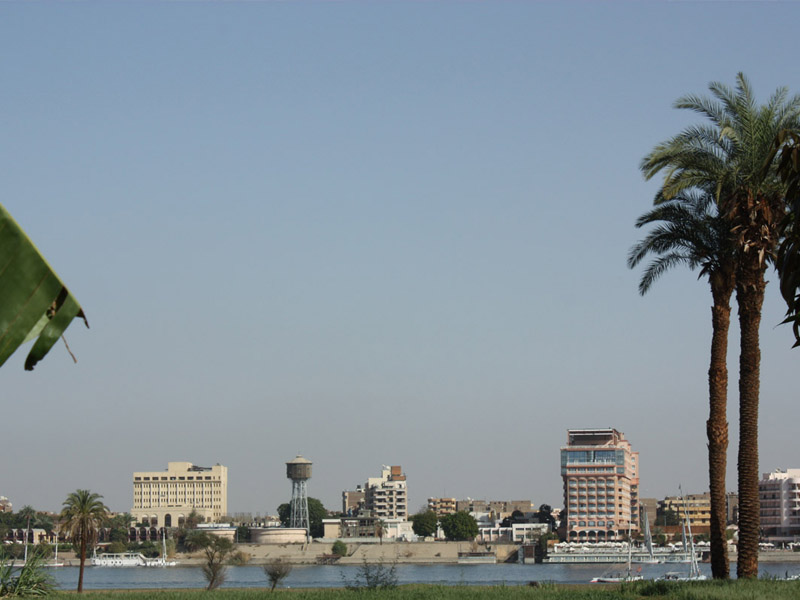 Luxor, in arabic al Uqsur, situated on the eastern shore of the Nile is one of the most important and oldest areas of tourism in Egypt. The Nile which is the lifeline of Egypt is on both shores bordered about five km wide by fertile ground. This green oasis is winding through Egypt and is replaced by the Arabic desert in the east and the Lybian desert in the north-west. Other than the repute as lifeline it is also the main artery of Egypt. Luxor is point of origin and terminus for many cruise liners to the southward located Assuan.